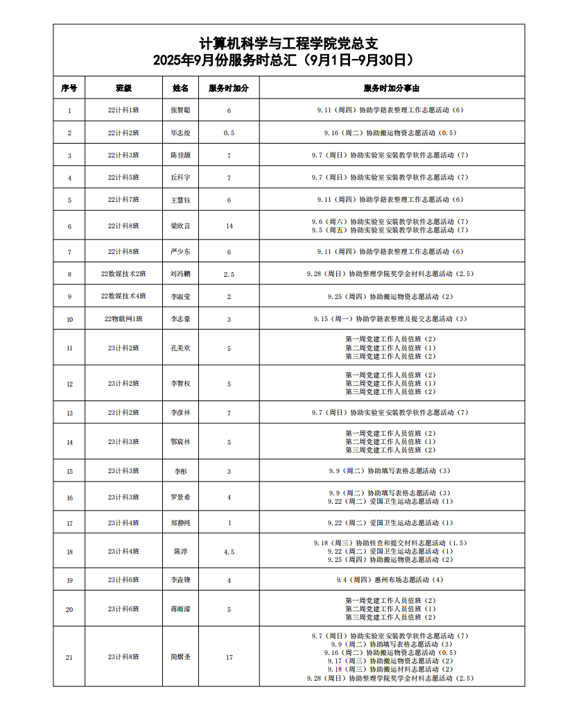 在听取培养联系人、党员和群众意见的基础上,经支委会研究决定,每月对计算机科学与工程学院各个发展阶段的同志进行服务时公示,具体情况公示如下。