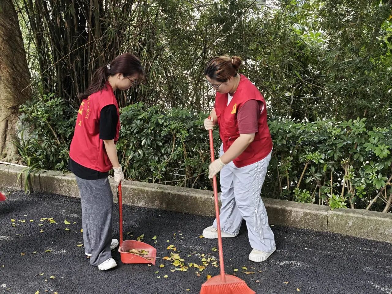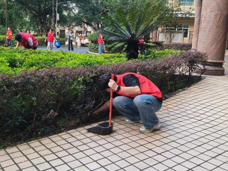 学生志愿者们戴上手套、拿着铁夹和扫帚开展清扫活动,他们夹走绿化带的垃圾,又将路面上的树叶和垃圾清扫掉,以专注认真的态度投入到打扫工作中,一丝不苟地清理每一处角落,充分展现了我院学子踏实肯干、严谨细致的工作态度。