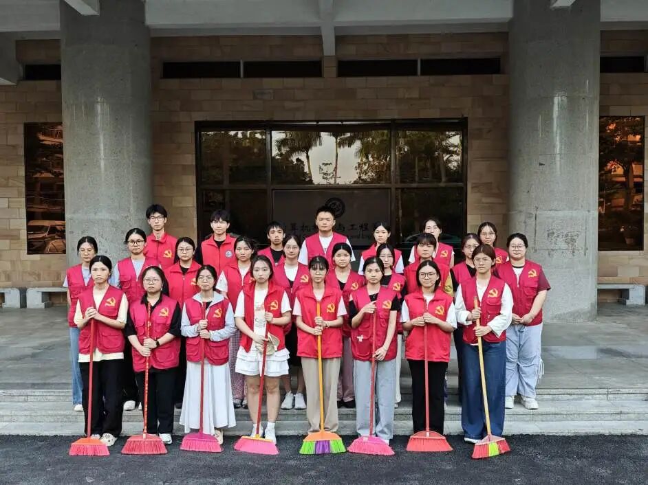下午4点,26位学生志愿者准时到达4栋信息楼大厅,有序地领取清洁工具,跟随党支部工作人员到达指定地点开展打扫活动。
