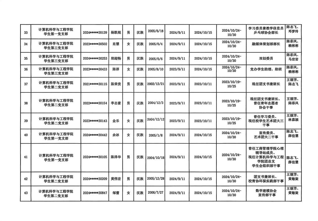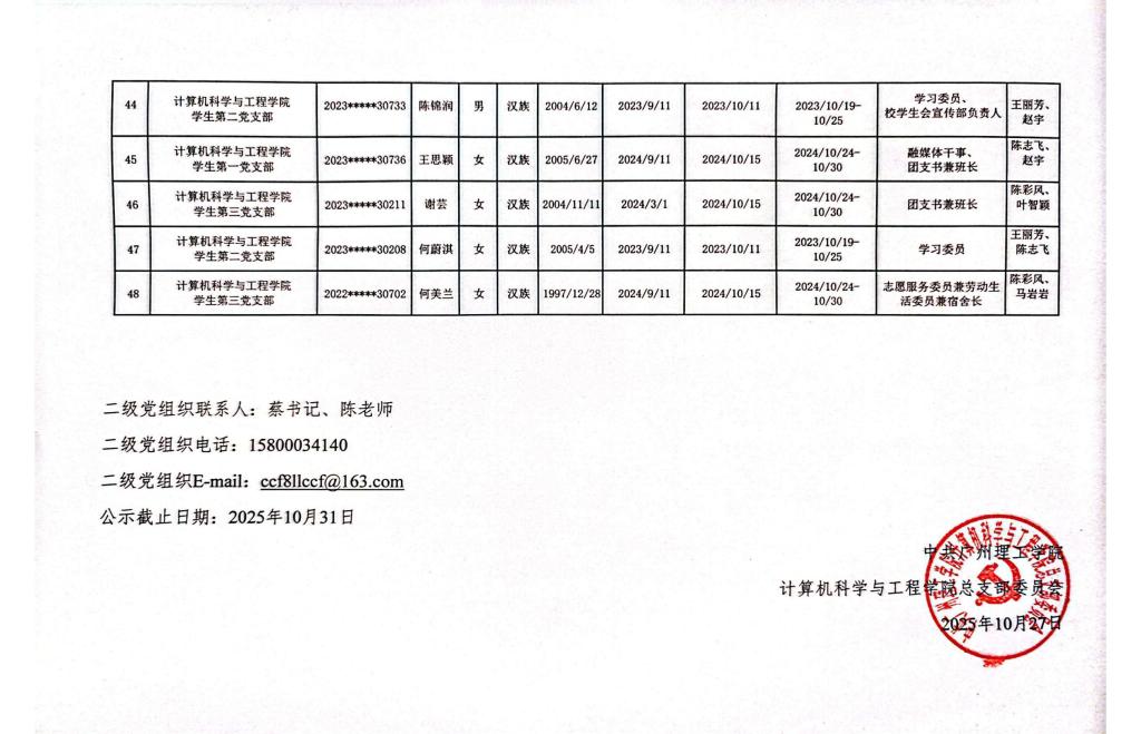关于拟确定杨扬等48名同志为发展对象的公示