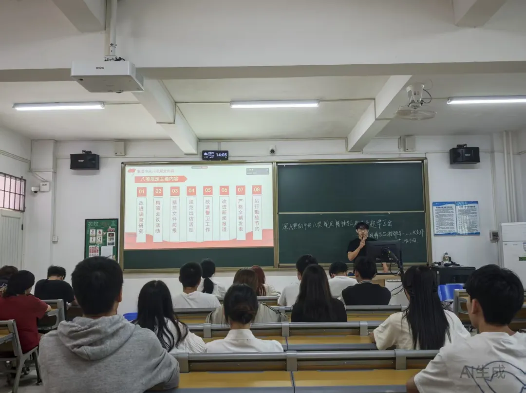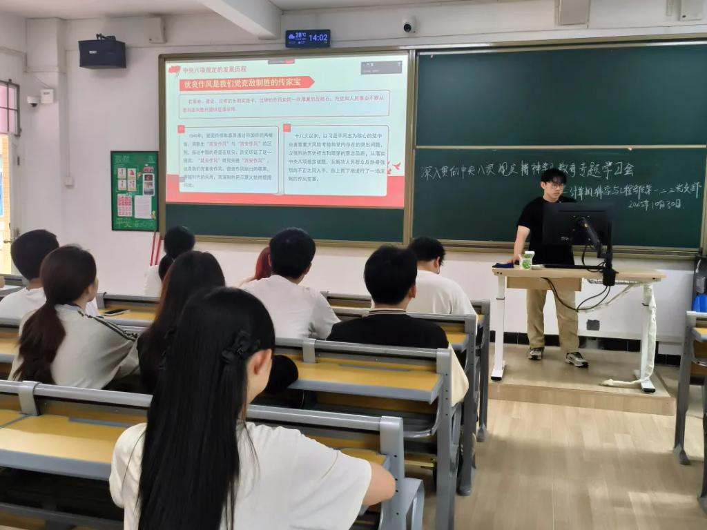 10月30日,计算机科学与工程学院学生第一、二、三党支部在6栋203教室开展了以“中央八项规定精神筑牢廉洁自律防线”为主题的理论专题学习会。会议由学生第一党支部副书记杨泽平主持,全体学生党员按时参会。
