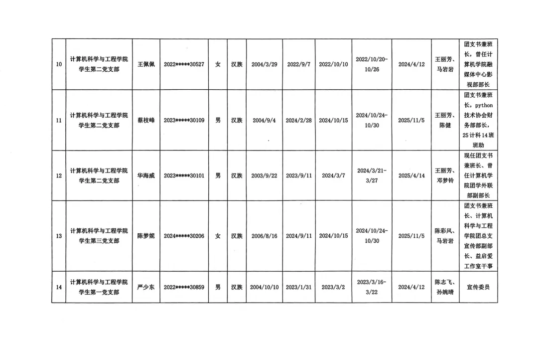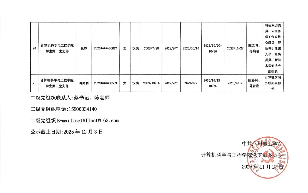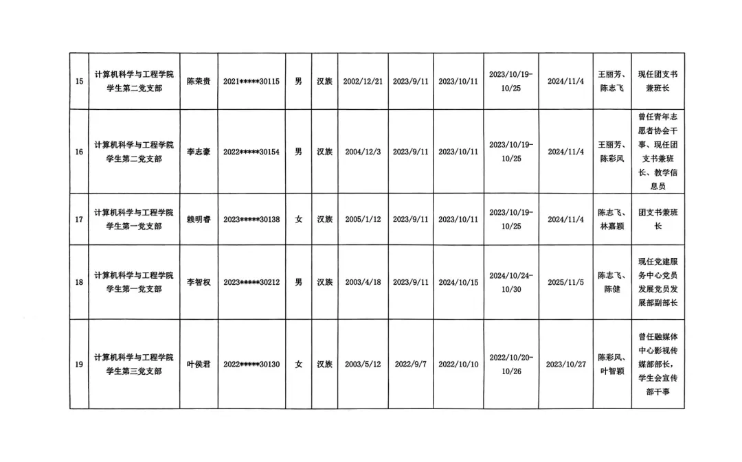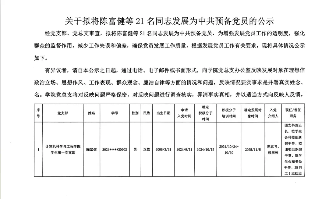 关于拟将陈富健等21名同志发展为中共预备党员的公示