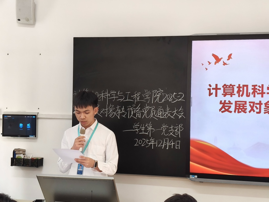 12月4日下午,计算机科学与工程学院学生第一、二、三党支部于6栋104、105、106召开2025-2期发展对象转预备党员通表大会。学生第一、二、三党支部书记陈志飞、王丽芳、陈彩风老师,全体党员同志,21名发展对象以及党支部工作人员按时参会。