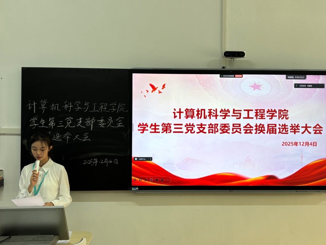 本次换届选举大会不仅为各支部注入了新的活力,更强化了党员的责任意识与先锋意识。计算机科学与工程学院学生党支部将以此次会议为起点,继续深入学习贯彻习近平新时代中国特色社会主义思想,创新活动形式,深化服务内涵,为学院发展与人才培养贡献青春力量!