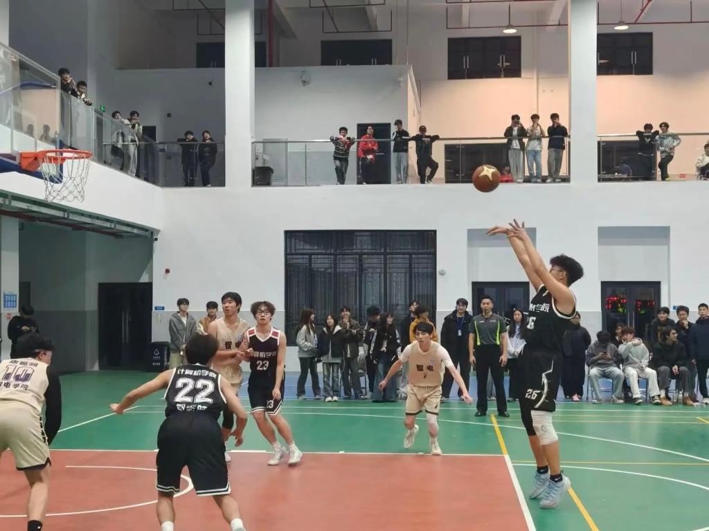 2026年1月4日,男子组决赛如期上演,我院男篮队员迎战智电学院,展开激烈角逐。比赛一开场便进入白热化阶段,双方攻防转换节奏极快,每一次传球、抢断与投篮都扣人心弦。即便中途陷入比分落后的困境,男篮队员们依旧不畏强手、奋勇拼搏,凭借默契传接多次撕开对方防线,发起一轮又一轮猛烈反扑。终场哨声响起,我院男篮虽惜败对手,仍成功斩获亚军。