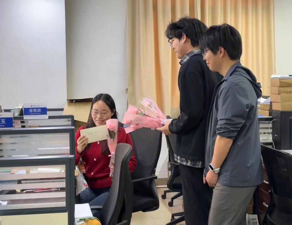 随着活动接近尾声,工作人员开始协助同学们将写好的贺卡装入精心准备的彩色信封。每一个被仔细封口的信封,都显得沉甸甸的。这重量,不仅仅是纸张的厚度,更包含着广理学子对老师教学工作的高度肯定,以及对老师无私付出的深深感激。将信封配着团总支准备好的鲜花,一起送到老师的办公桌上。