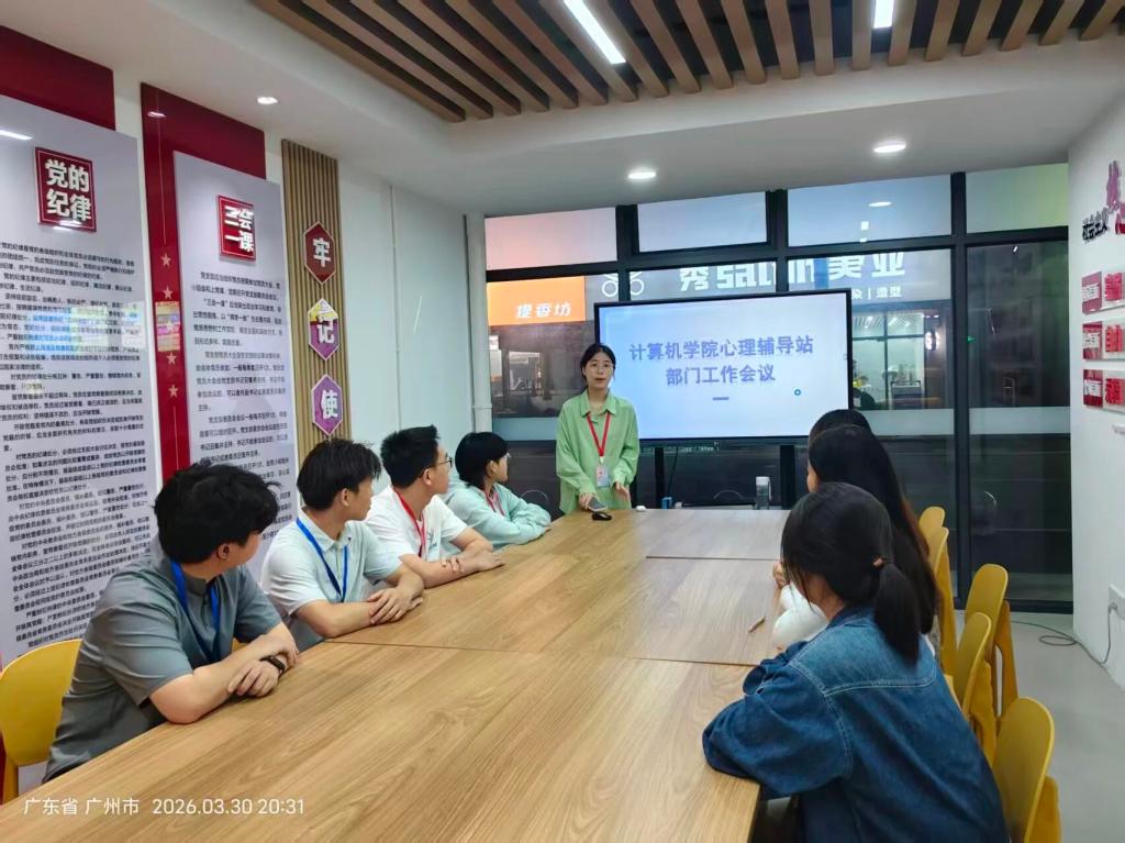 2026年3月30日,计算机科学与工程学院心理辅导站于学生第一社区活动室顺利召开了新学期部门例会。会议由心理辅导站学生负责人余汇主持,结合自身工作经验与专业积累,对新学期部门工作进行了全面部署与深入指导。心理辅导站的全体成员均积极参与了此次会议,在会议过程中,大家全神贯注,认真聆听干部的讲解,积极思考并做好相关记录。