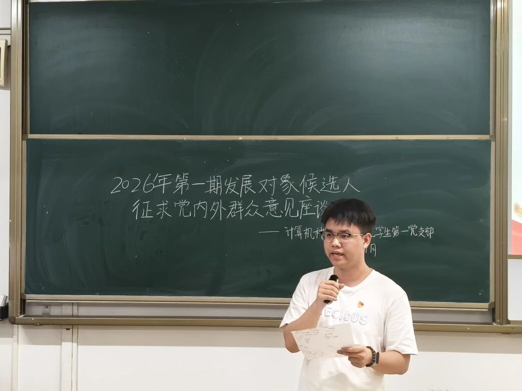 4月3日,计算机科学与工程学院学生第一、二、三党支部于6栋214、215、216教室召开2026年第1期发展对象候选人征求党内外群众意见座谈会。全体党员同志、发展对象候选人和学生党支部工作人员按时参会。