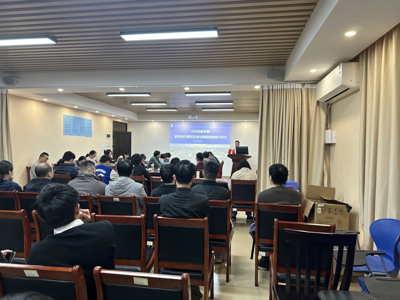 为进一步规范新学期教学运行管理,全面提升课堂教学质量,扎实推进本科教育教学审核评估准备工作。2026年3月5日,我院计算机科学与技术系在4-303召开了以“新学期教学运行情况交流与课堂质量提升”为主题的研讨会。会议由系主任赵玉刚主持,系部全体教师参加了此次研讨。
