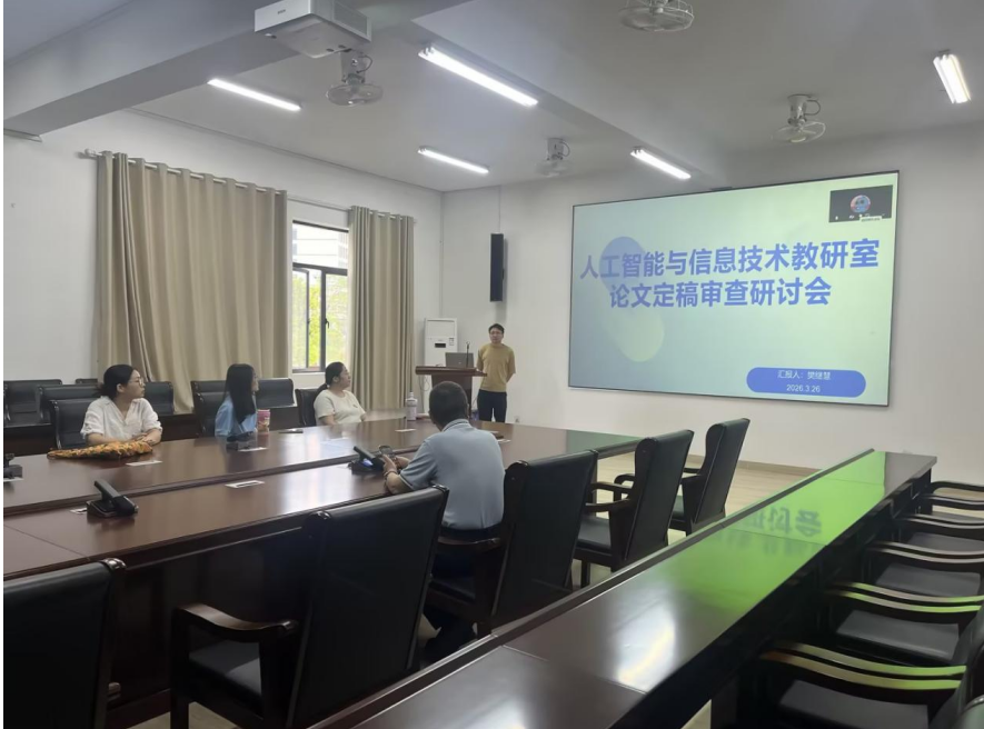 3月26日下午,我院人工智能与信息技术教研室在行政楼203会议室召开论文定稿审查研讨会。会议由教研室主任樊继慧主持,围绕学生论文定稿审核工作展开。全体教师按照分组安排,对所指导学生的论文定稿进行集中审查,重点查摆问题、提出修改建议,进一步加强毕业论文质量全过程管理。