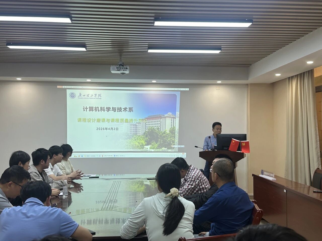 为持续深化课堂教学改革,常态化打磨教师教学设计能力,全面规范课堂教学各环节,杜绝教学应付心态,着力提升课堂教学质量。4月2日下午,我院计算机科学与技术系在4-303召开了以“课程设计磨课与课程质量提升教研活动”为主题的研讨会。此次会议由赵玉刚和陈焰主持,系部全体教师参加了此次研讨。