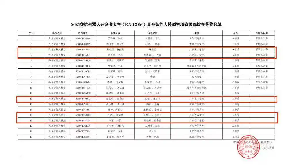 近日,2025睿抗机器人开发者大赛(RAICOM)具身智能大模型赛项省级选拔赛结果揭晓,我院学子凭借卓越表现,在赛事中斩获佳绩。