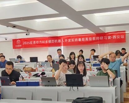 为积极响应国家“新工科”人才培养战略,紧跟教育数字化转型浪潮,2025年7月20日至25日,广州理工学院计算机科学与工程学院选派6名专任教师赴西安参加由软通动力主办的“2025 AI多模态机器人开发实践暑期高级教师研习营”。此次培训聚焦人工智能与物联网(AIoT)技术深度融合,助力高校教师提升教学设计与工程实践能力。