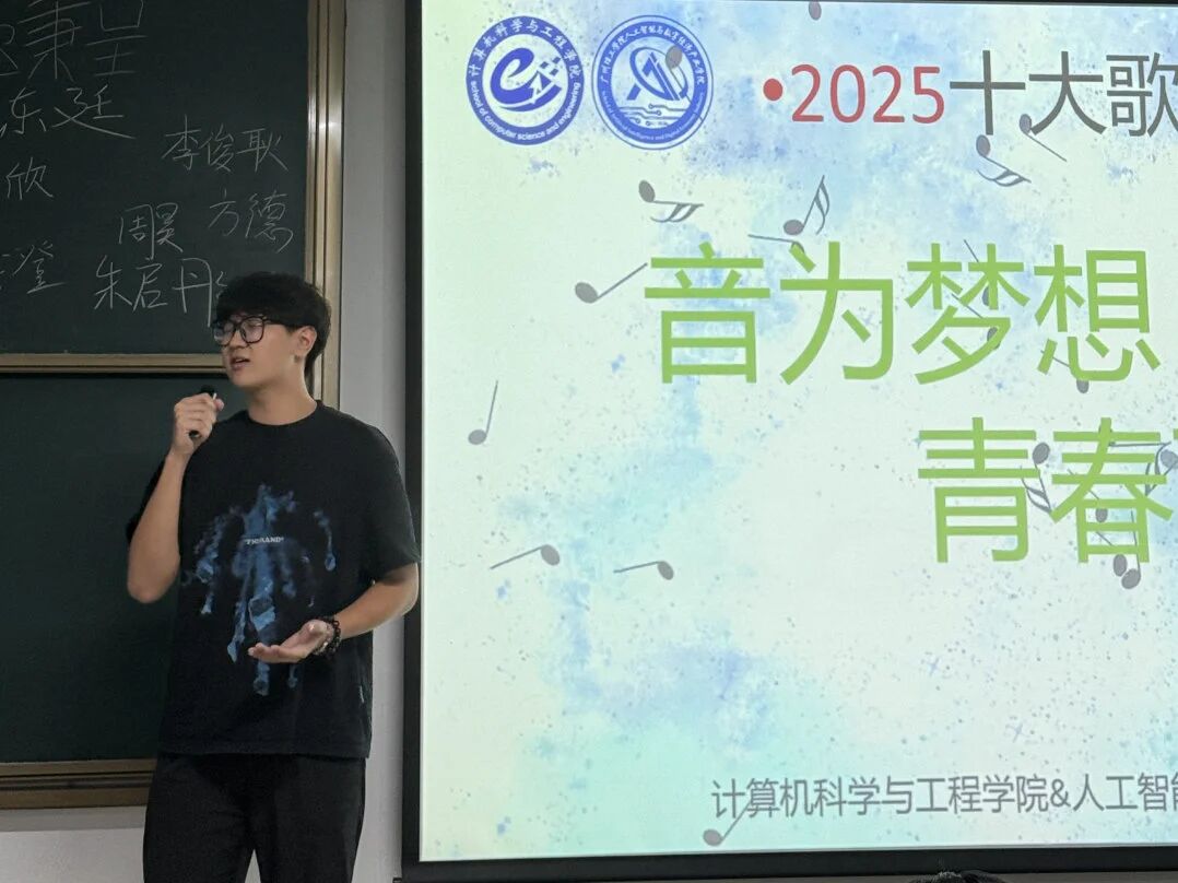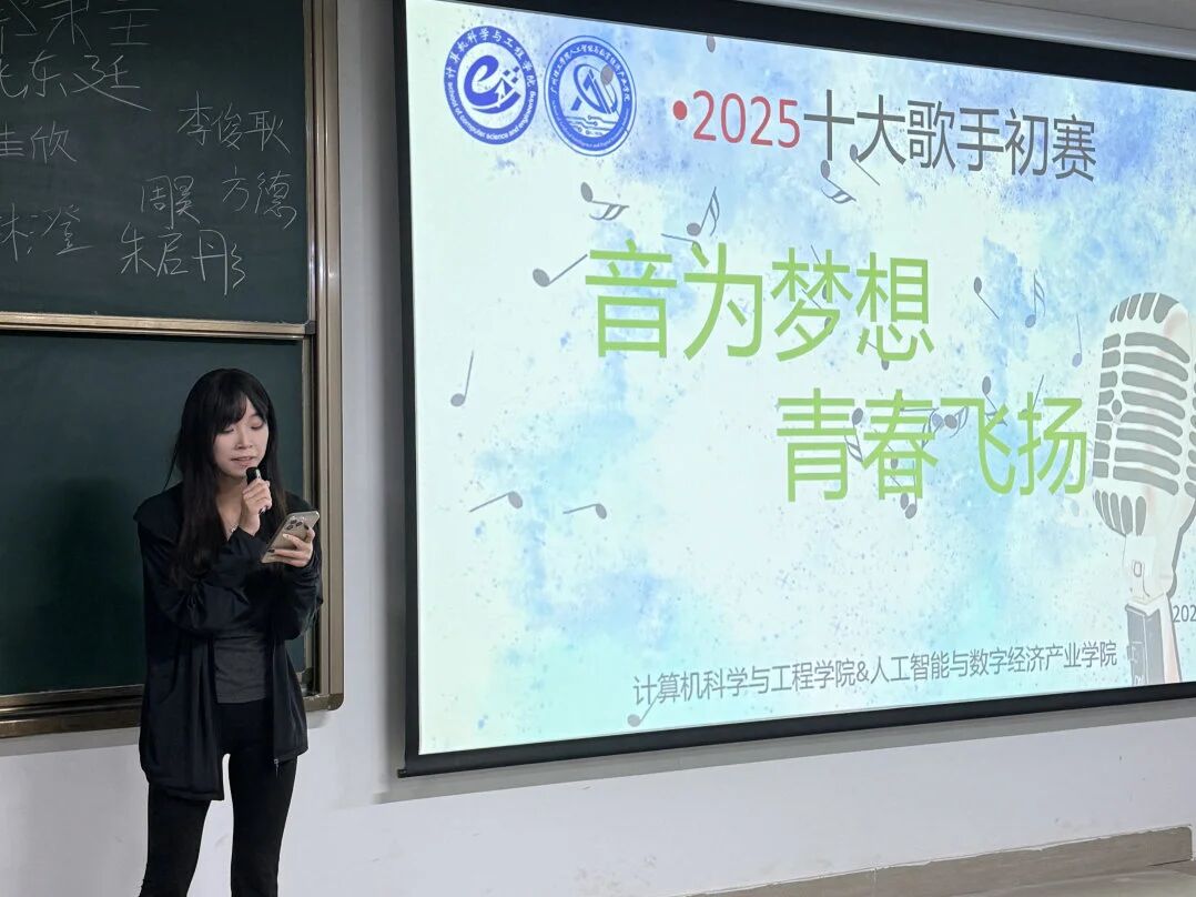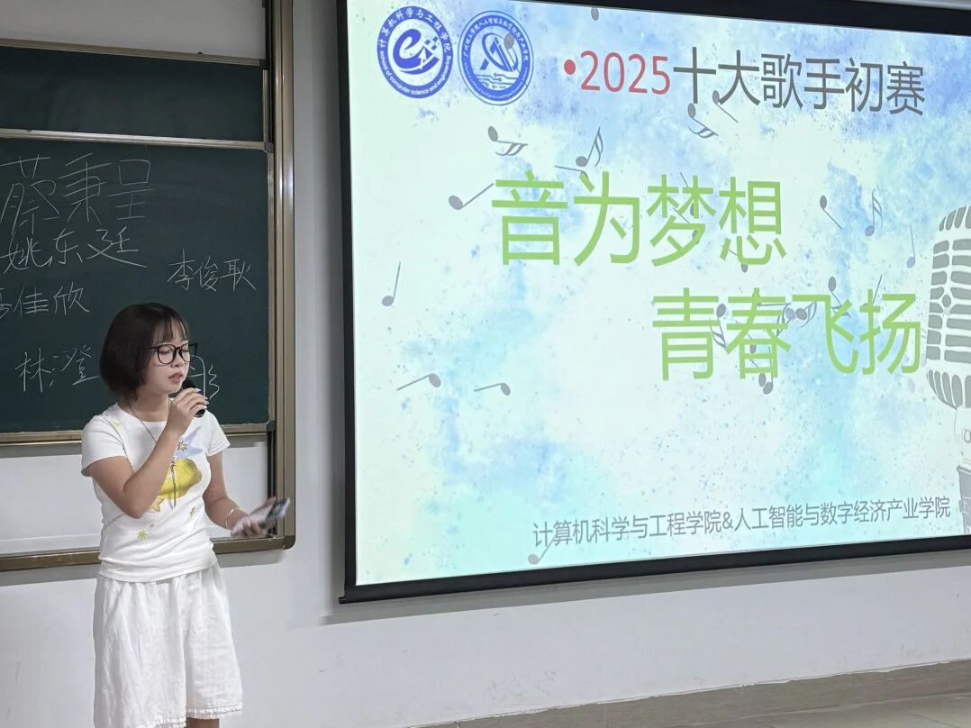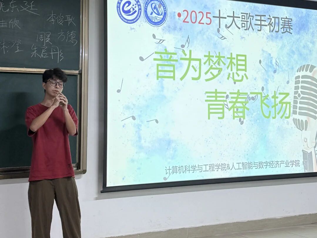10月12日晚,白云校区13-403教室内掌声与歌声交织,由计算机学院、产业学院联合主办的“十大歌手”比赛初赛在此圆满举行。怀揣音乐热忱的学子们轮番登台,以歌喉传递青春态度,为现场师生呈现了一场活力满格的视听盛宴。