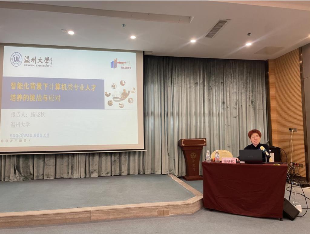 国家二级教授施晓秋以“智能化背景下计算机类专业人才培养的挑战与应对”为题,深入剖析了人工智能技术浪潮对专业人才能力结构带来的新要求,并分享了在专业建设、课程改革与工程教育认证方面的宝贵经验,为学院应对新一轮科技革命与产业变革提供了深刻启示。