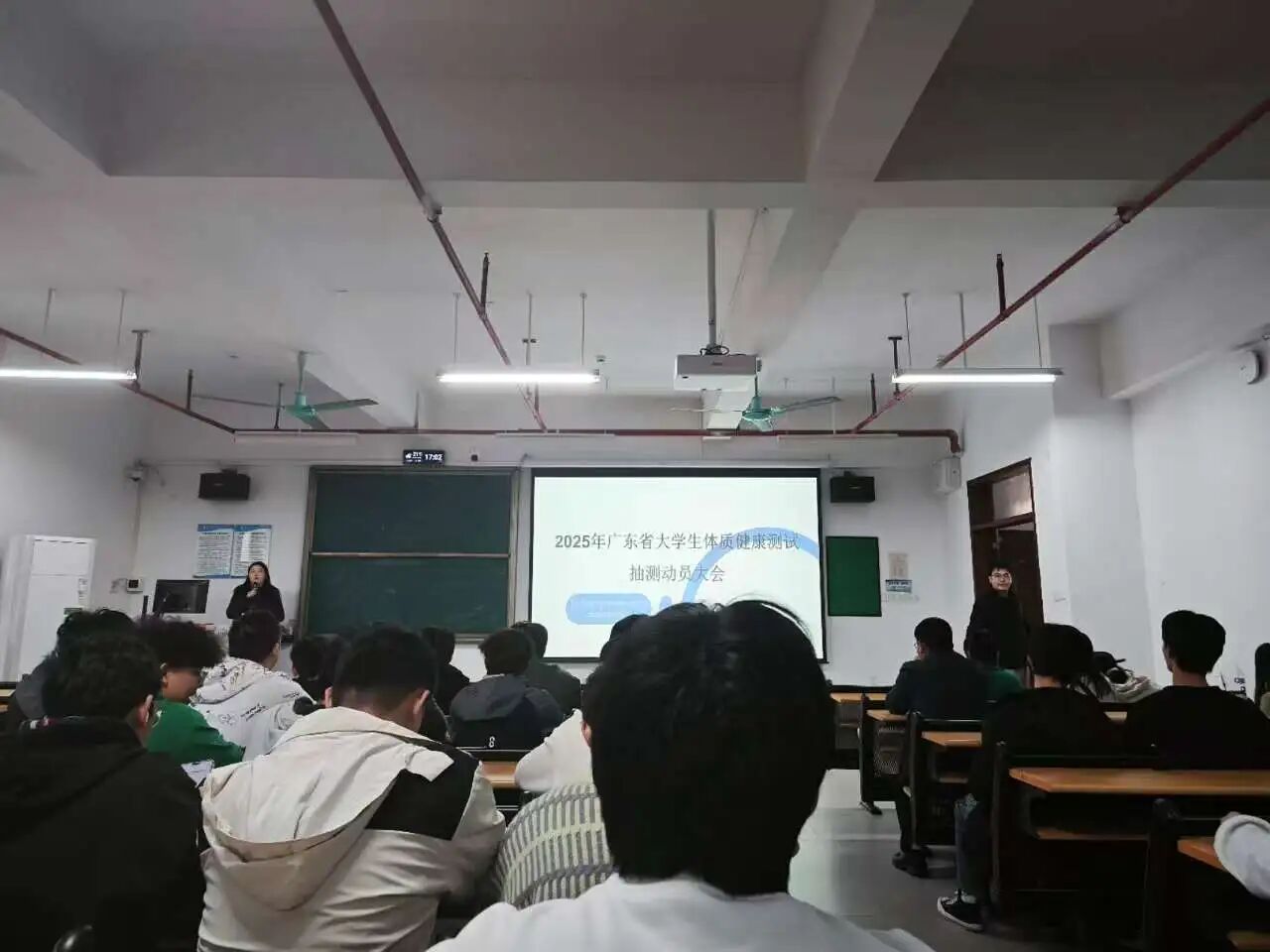 为迎接2025年广东省大学生体质健康测试抽测,充分调动同学们的积极性,计算机学院和产业学院于12月4日下午在13栋教学楼403教室召开广东省体质健康测试抽测动员会。动员会面向全体被抽测同学召开,旨在明确安排、落实准备,引导同学们以最佳状态迎接挑战。