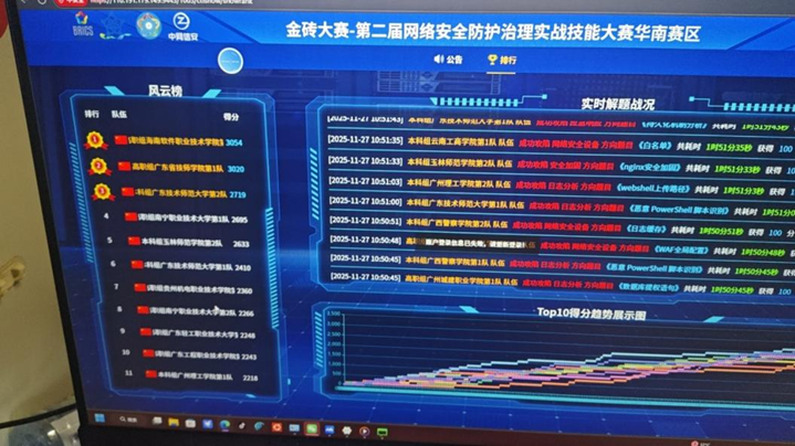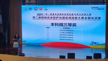 12月15日,2025“一带一路”暨金砖国家技能发展与技术创新大赛之第二届网络安全防护治理实战技能大赛全国总决赛圆满收官。我院学子组建的两支参赛队伍在赛事中不断突破自我,率先在华南赛区取得优异成绩,成功晋级全国总决赛。晋级团队最终在全国赛场上荣获本科组三等奖,充分彰显了我院学子的专业能力。