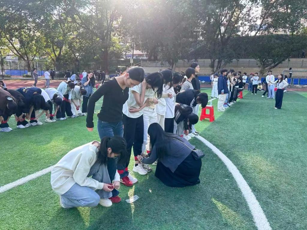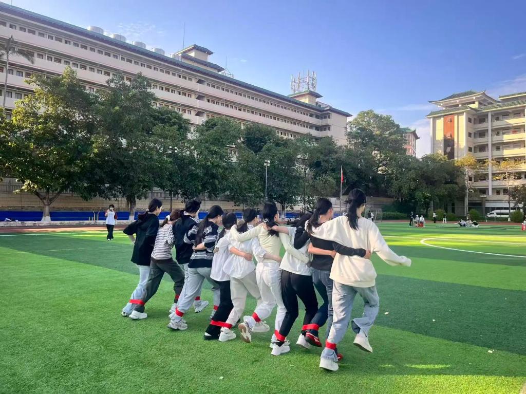 “十人十一足”不仅考验速度,更考验团队的信任与配合。从赛前紧张的绑腿磨合,到赛场上的并肩向前,队员们将个体融入集体,用汗水诠释了“同心同足”的赛事精神。现场加油声此起彼伏,展现了学院团结向上的蓬勃朝气。