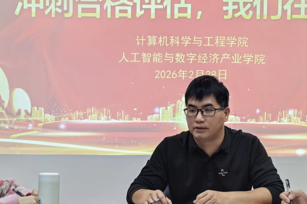 为深入贯彻落实学校2026年春季学期预备周学生工作例会精神,2月28日下午,计算机科学与工程学院、人工智能与数字经济产业学院召开“冲刺合格评估,我们在行动”专题工作会议。会议由学院党总支书记蔡岳良主持,白云校区全体辅导员线下参会,惠州校区全体辅导员以线上形式参会。