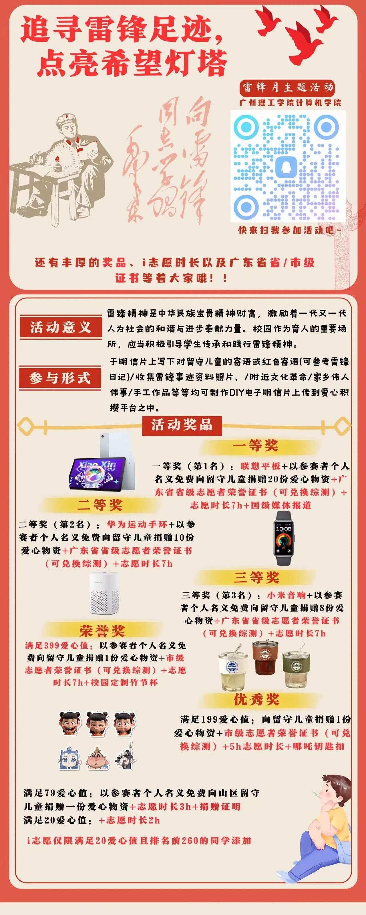 传承雷锋精神,不负青春韶华。让我们以笔为媒,以爱为桥,用点滴善举汇聚暖流,让雷锋精神在校园落地生根,为山区童心点亮希望之光!