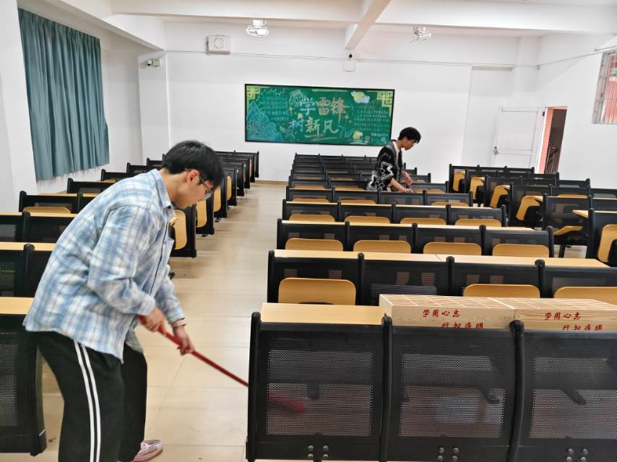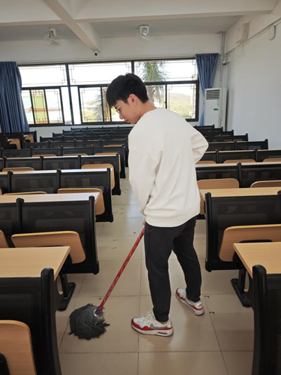 活动前期,学院提前部署、合理分工,明确报名学生负责区域,准备好扫帚、拖把、抹布等清洁工具,确保打扫工作有序高效推进。下午2时许,参与活动的学生迅速集结,并投入到卫生打扫工作中。