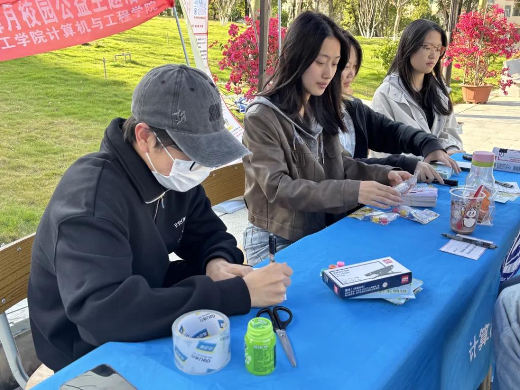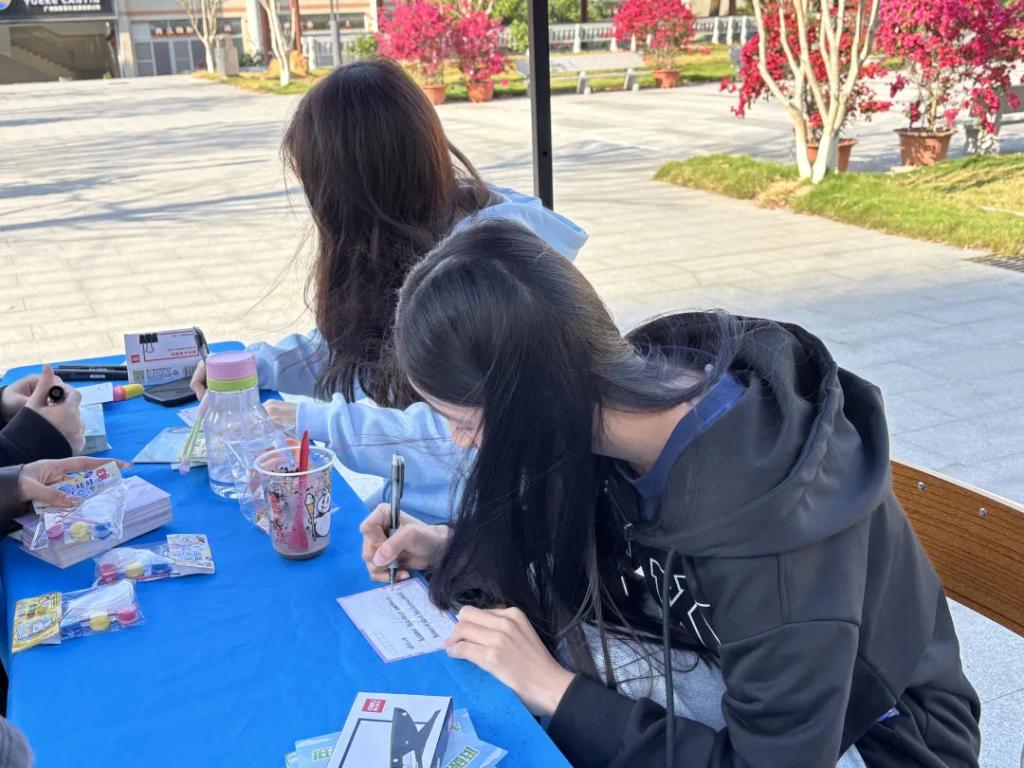 活动期间,志愿者们热情洋溢地向过往师生介绍活动意义,邀请大家参与明信片书写,并为每位参与者送上可爱的陶瓷娃娃作为纪念,引导更多人加入线上献爱心行列。