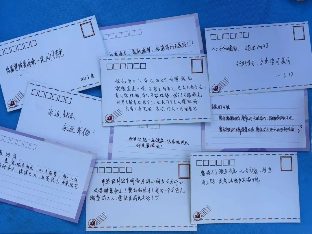 活动现场,蓝色帐篷下人头攒动,同学们驻足提笔,在明信片上绘出可爱的插画、写下真挚的寄语。一张张色彩斑斓的明信片,汇聚成了爱的海洋,诉说着当代青年对同龄人的牵挂与期许。