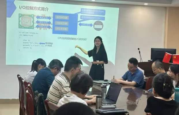 课程磨课是本次会议的重要内容。按照学院统一部署,磨课工作将紧扣国家金课 “两性一度” 标准开展。多位教师结合专业课程分享教学经验:庄蓁蓁以《计算机组成原理》为示范课程,围绕 I/O 控制方式开展教学展示,通过生活场景导入、互动提问、案例类比等方式,将抽象知识转化为直观易懂的内容,有效提升课堂吸引力。宋莹莹以《软件项目管理》为例,分享软件项目管理实验的教学方法,采用角色分组、问题驱动、方案重构等方式,运用 “讲-做-评-总” 短循环与分层教学设计,兼顾不同层次学生的学习需求。宋咏君以《模式识别》为例,针对 PCA 主成分分析实验教学,摒弃复杂数学推导,以二维可视化方式直观讲解核心原理,清晰拆解关键参数与实验流程,并借助超星平台打造课前预习、课中实操、课后拓展的一体化教学模式,全面提升实验教学效果。